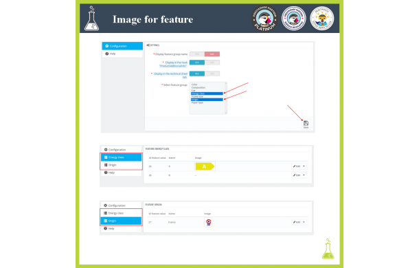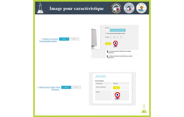 You will also have the option to choose where your pictorial features will appear. For example, you can choose to display the images related to your features on the right side of the product page and not to replace the text values in the technical sheet tab.