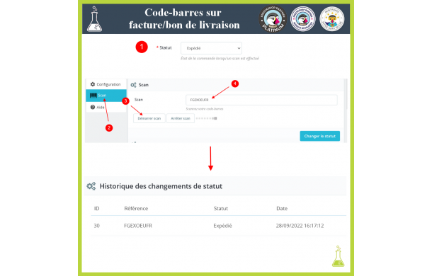 Indeed, Ec generatebarcode is a module that generates barcodes on invoices orders. It’s possible to display the order id or reference on the barcode, after this you can change the order status by manually returning the value of the barcode or scanning it.