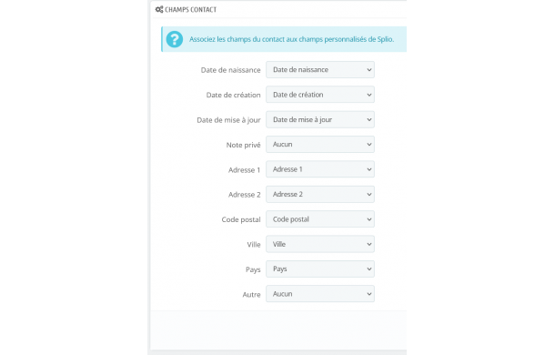 Notre module est très simple d'utilisation et nous pouvons le personnaliser sur demande, c'est l'outil idéal pour synchroniser votre boutique à Splio.